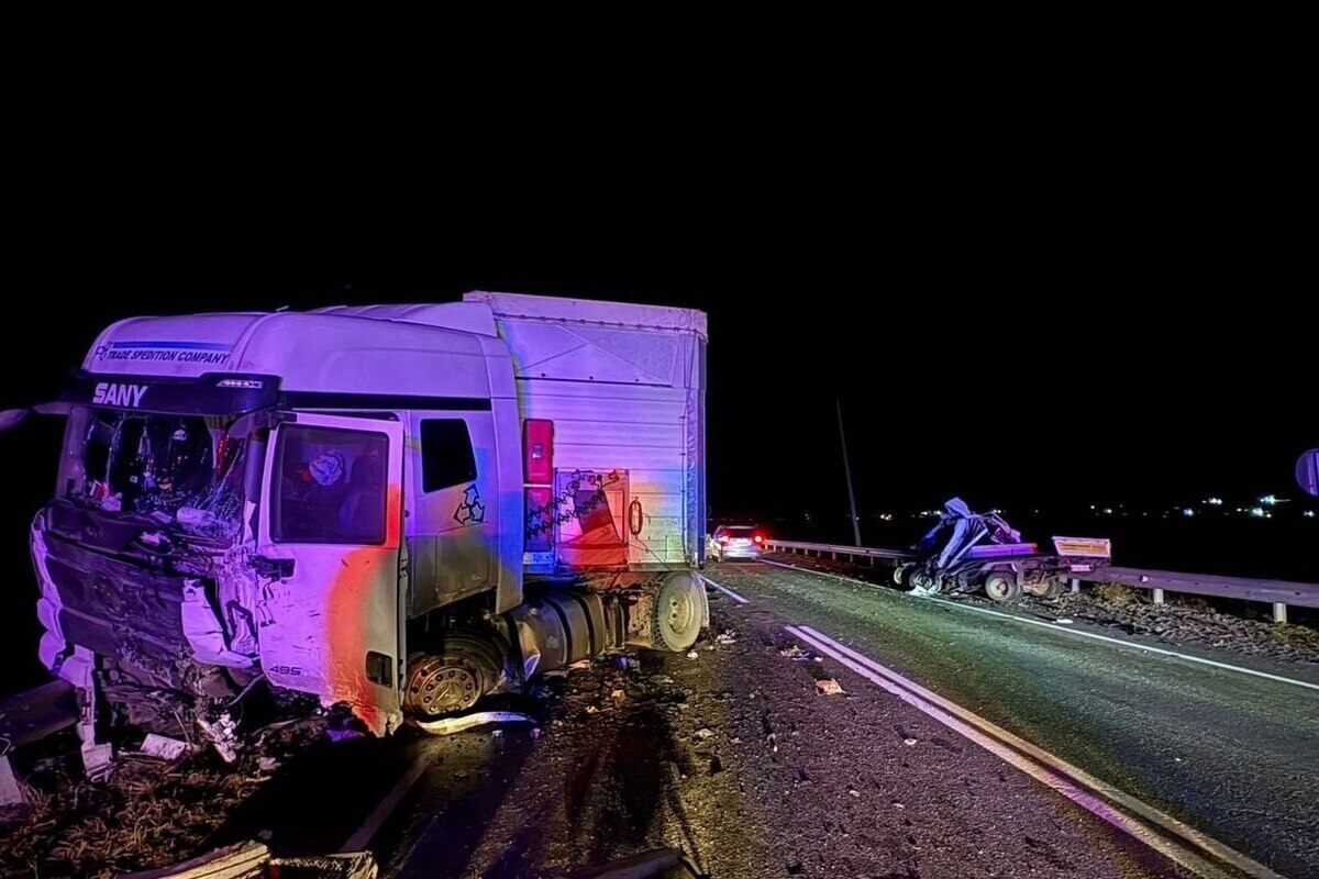 Уточняется, что на 1078 км трассы столкнулись большегруз и автомобиль Mazda Bongo.