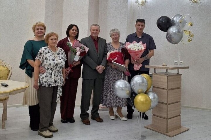 В Краснокаменске 50-летние юбилеи отметили сразу три семьи, которые работали на главном предприятии района. Об этом сообщила пресс-служба департамента ЗАГС Забайкальского края.